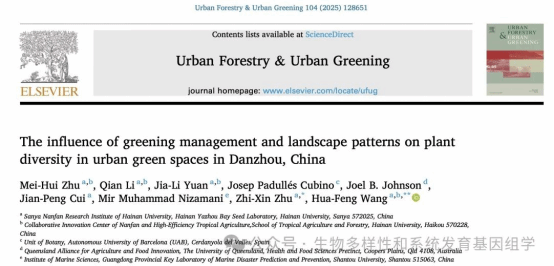 2024年12月,王华锋课题组在《Urban Forestry & Urban Greening》期刊(中科院一区TOP期刊,IF=6)发表题为“The Influence of Greening Management and Landscape Patterns on Plant Diversity in Urban Green Spaces in Danzhou, China”https://doi.org/10.1016/j.ufug.2024.128651的研究论文。beats365vip官网登录入口硕士研究生朱美惠为该论文的第一作者,王华锋教授为论文的通讯作者。本研究得到国家自然科学基金的资助。