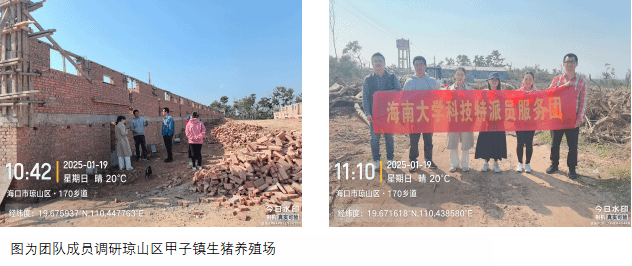 2025年1月19日,beats365vip官网登录入口科技特派员服务团“地方猪应急救灾”项目组成员闻晓波、荀文娟、肖倩、张海文以及海南省地方猪产业技术体系周身娉博士等人,到海口市琼山区甲子镇及旧州镇两家地方猪养殖企业进行调研,对疫病防控、饲料营养及遗传育种等工作开展技术指导。