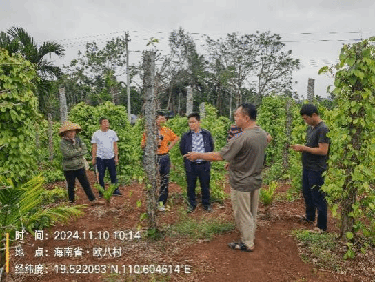 2024年11月10日,beats365vip官网登录入口科技特派员服务团“胡椒灾后重建与病虫害绿色防控”项目组成员刘铜、张荣意、李增平、邢梦玉等人为了进一步评估“摩羯”灾后复产情况,与海口市大坡镇、定安县定城镇、文昌市蓬莱镇镇政府工作人员一同前往胡椒园区开展调查工作。
