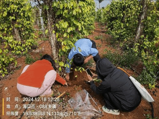 2024年12月18日,beats365vip官网登录入口科技特派员服务团“胡椒灾后重建与病虫害绿色防控”项目组成员刘铜、邢梦玉、张漫漫、张丽等人为了做好胡椒重要病虫害监测,前往定安定城镇、文昌蓬莱镇和海口大坡镇胡椒园区采样。