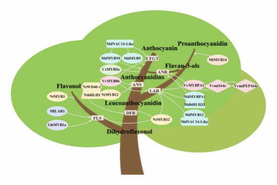 在类黄酮家族内部,也存在着激烈的竞争与合作。花青素和黄酮醇就像是两位争夺“最受欢迎色素”称号的选手,它们共享相同的合成底物,因此在植物体内常常此消彼长。而花青素和原花青素之间,则更像是并肩作战的战友,它们在不同的生理过程中发挥着各自的作用,共同守护着植物的安康(图2)。