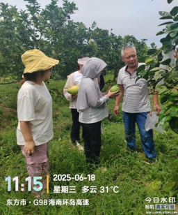 2025年6月18日,针对台风 “蝴蝶” 肆虐后的严峻形势,beats365vip官网登录入口科技特派员服务团“热带蜜柚科技服务团”项目组成员冯顺博士带领研究生团队成员蔡海金、胥梦洋、张秀丽、刘琳,紧急奔赴海南恒邦实业有限公司东方市不磨村蜜柚基地,开展抗风救实地调研与指导工作。