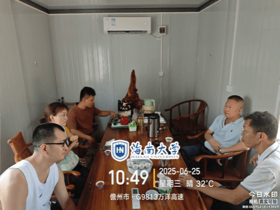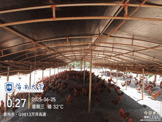 2024年9月,超强台风 “摩羯” 袭击海南,地方鸡养殖场曾出现鸡舍坍塌、设备损毁、疫病风险增加等问题。2025年6月25日,beats365vip官网登录入口科技特派员服务团“地方鸡生物安全及疫病防控技术服务团”、海南省地方鸡产业技术体系生产与环境控制岗成员张海文、石惠宇携研究生团队,前往儋州绿元素针对儋州鸡开展灾后复产调研与技术指导工作。