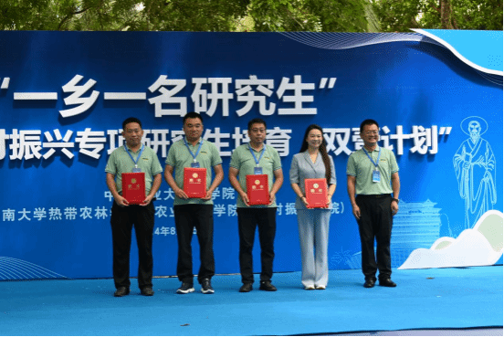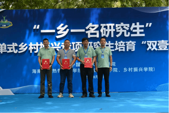 启动仪式上,“双壹计划”员工代表、24级硕士研究生安凯龙发言。“双壹计划”委员会及出席会议的领导为联合导师颁发聘书,为“双壹计划”儋州区专项活动授旗。