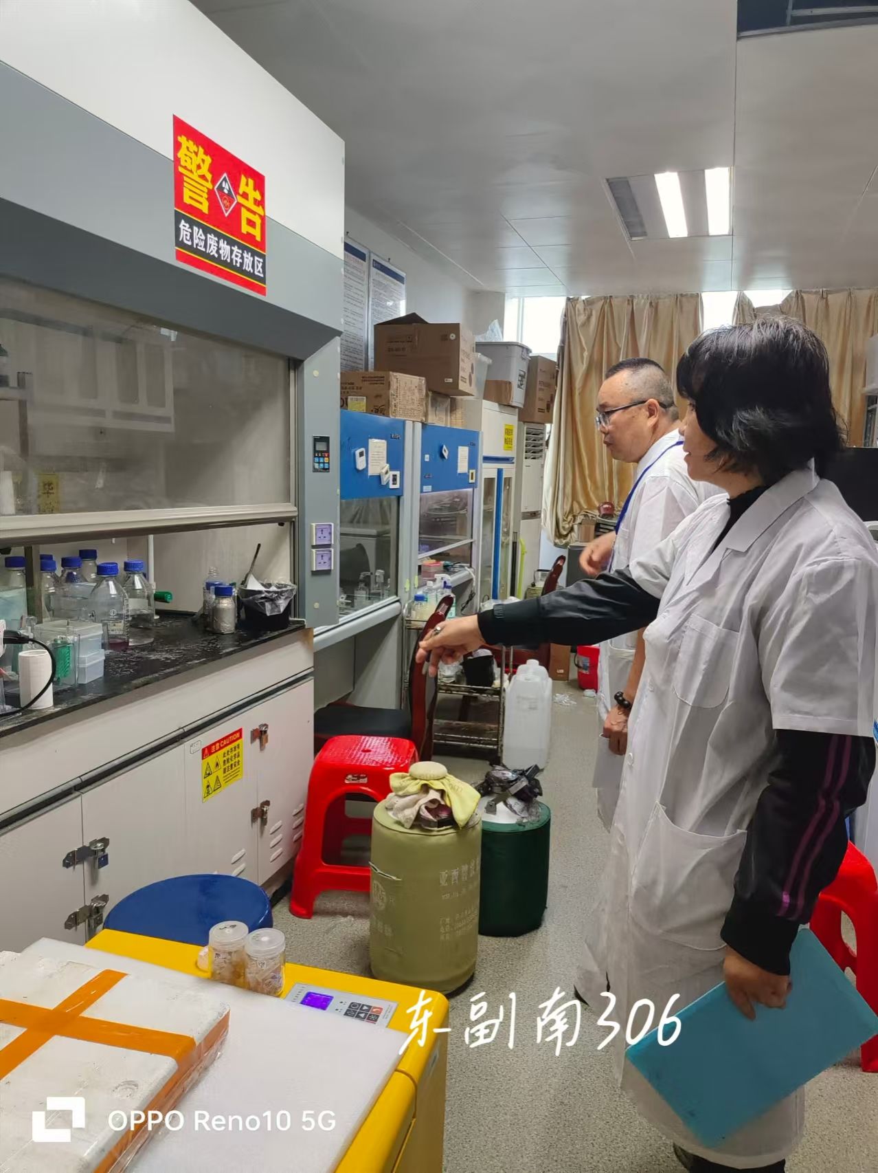 在检查中发现大部分实验室安全管理良好,但个别实验室仍存在环境较脏乱、实验室内存放纸箱等易燃物品较多、废液未及时处理以及实验室内气瓶未固定等问题。针对以上实验室安全问题,检查组对能整改的安全隐患已经当场要求实验室相关人员进行整改,不能当场整改的要求限期整改。 (图文:李娟玲,张彩凤;校对:莫廷辉;审核:王健)