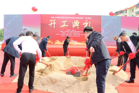 鞭炮响起,钩机舞动,参会嘉宾们上台进行培土奠基仪式,共同见证了这一重要时刻。据悉,本次集中开工的四个项目总建筑面积超20万平方米,总投资金额达17.25亿元。新建儋州校区东坡员工宿舍及附属食堂(一期)项目总建筑面积约43645平方米,包括4栋员工宿舍、1座食堂和室外校园道路、园林绿化等。