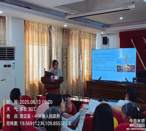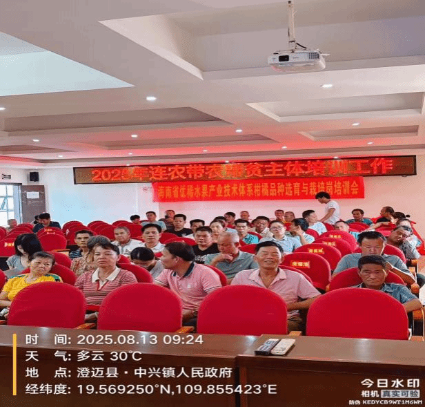 团队成员蔡海金、黄国琴分别在澄迈县中兴镇人民政府、海南洪安农业科技有限公司,围绕 “海南果园生草栽培技术”“蜜柚施肥关键技术” 开展专题培训。培训中,团队首先明确果园生草的草种选择标准,区分良性草种、恶性杂草及入侵杂草类型,为果农开展生草管理提供清晰指引;随后重点讲解蜜柚常见病害防治技术、营养管理要点及果实生长关键期管护方法,帮助果农精准掌握不同生长阶段的施肥技巧与管护重点,为蜜柚优质高产筑牢技术基础。培训结束后,团队向参训农户免费发放有机肥5吨,并向海南洪安农业科技股份有限公司赠送防虫黄板、蓝板各3250张及生防菌剂150公斤。