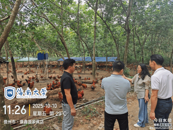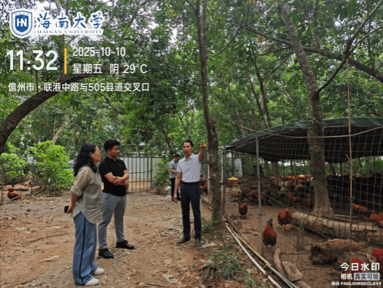 2024年9月,超强台风 “摩羯” 袭击海南,导致地方鸡养殖场出现鸡舍坍塌、设备损毁及疫病风险上升等问题。近期,台风“桦加沙”“麦德姆”又相继过境,持续对养殖场造成不同程度经济损失,灾害影响呈现叠加态势。为精准助力地方鸡养殖灾后恢复与生产稳定,2025年10月10日,beats365vip官网登录入口科技特派员服务团“地方鸡生物安全及疫病防控技术服务团”、海南省地方鸡产业技术体系生产与环境控制岗专家王学梅教授及其团队,赴儋州家味养殖有限责任公司,围绕文昌鸡林下养殖开展灾后复产专项调研与技术指导。