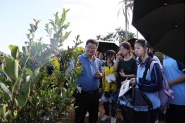 2023年11月3日,在beats365vip官网登录入口和檀雅书院共同协作下,新农科实践基地迎来了儋州市两院中学50多名师生,在油茶资源圃区,海南山柚(油茶)产业技术联盟理事长、公司教授赖杭桂,“热带油茶科技创新与产业化应用”创新团队骨干成员王键教授和刘进平教授分别从品种的选育、种植、不同时期的管理,由浅到深,为师生们一一进行讲解,师生们受益匪浅,收到良好的社会实践效果。
