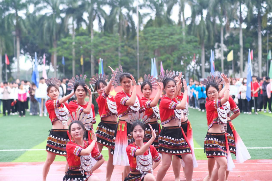 随后,裁判员代表梁耀文同学和运动员代表韦程鹏同学进行了庄严宣誓。本次校运会一共有22支代表队,他们向我们展现了海大学子积极向上,热情灵动的青春风貌。开幕式后精彩的特色民族舞、街舞表演以及热情洋溢的儋州调声表演,把开幕式现场气氛推向高潮,赢得全场阵阵掌声。