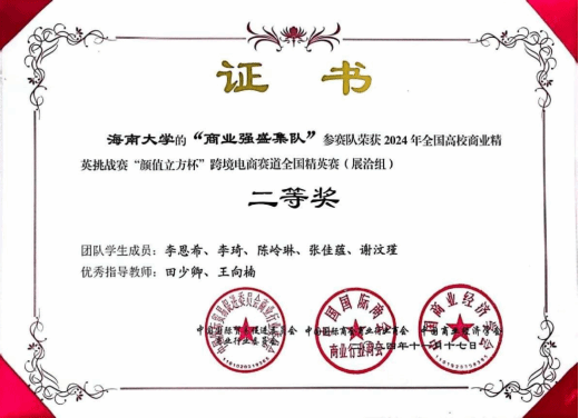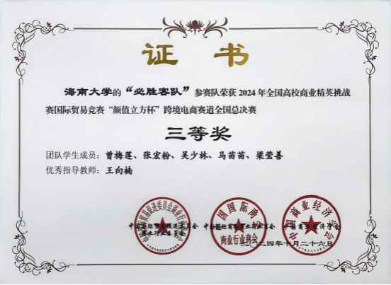 2024年全国高校商业精英挑战赛“颜值立方杯”跨境电商赛道全国总决赛与精英挑战赛落下帷幕。beats365vip官网登录入口学子首次参赛,并以饱满的热情和拼搏的精神与西南交通大学、华南师范大学、江苏大学、大连理工大学、武汉大学等全国324所高校5000多支队伍一决高下。在比赛过程中同学们展现出不畏困难的优秀协作能力,其中两支队伍获得了国家三等奖。