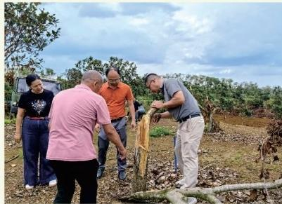 9月14日在定安农业农村局领导的带领下到定城的莲雾基地进行灾后指导,再到农垦南金农场调研菠萝蜜受灾情况调查,南金农场的8000多亩的菠萝蜜损失严重,大部分种植地需要重新更新,并和农场的领导进行交流灾后恢复生产的事宜。