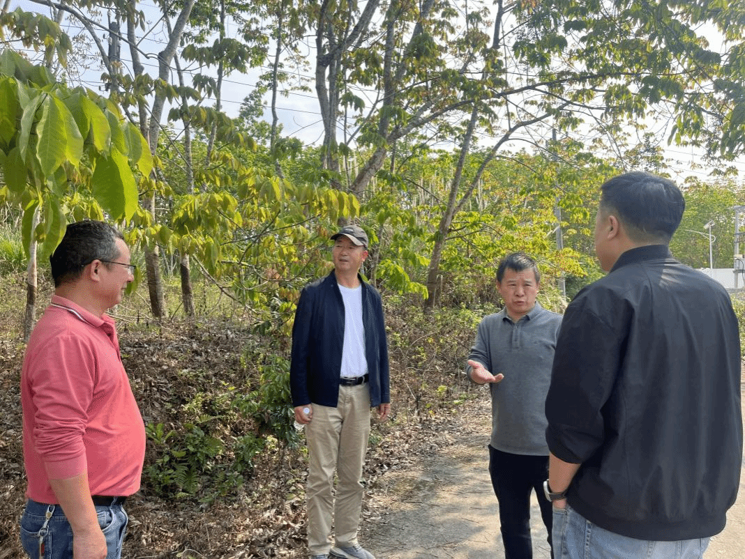 一行人首先来到中藤股份兰洋藤制品厂,与总经理范伟就打造“海南儋州‘橡胶+棕榈藤’复合生态产业基地”项目展开座谈,交流产业发展思路,围绕技术难题、市场拓展等关键问题展开热烈讨论,达成多项合作共识。随后,众人前往产业基地进行实地考察,结合当地土壤、气候条件,现场对棕榈藤种植场地选择进行技术指导。